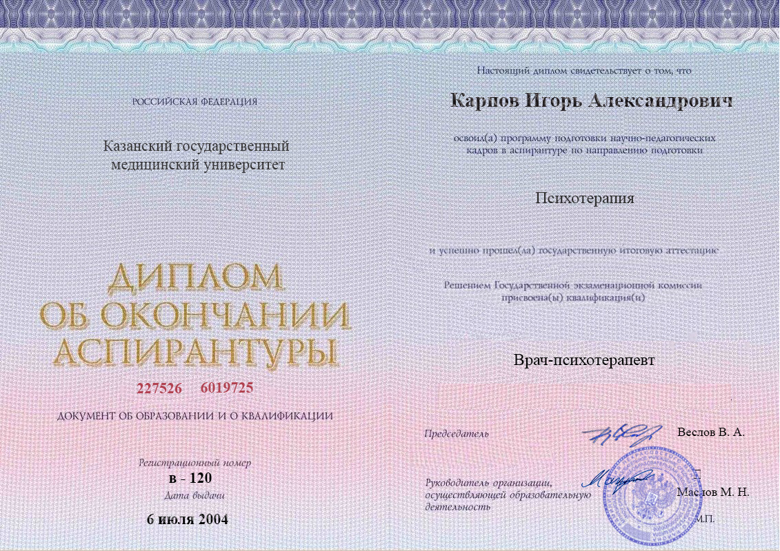 Диплом аспирантуры Карпова Игоря Александровича