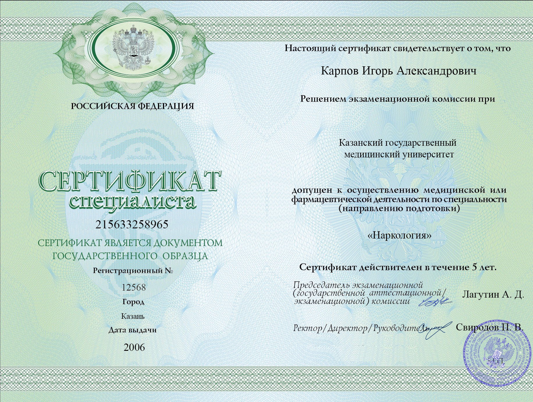 Диплом специалиста Карпова Игоря Александровича
