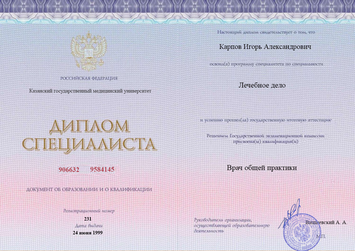 Диплом ординатуры Карпова Игоря Александровича